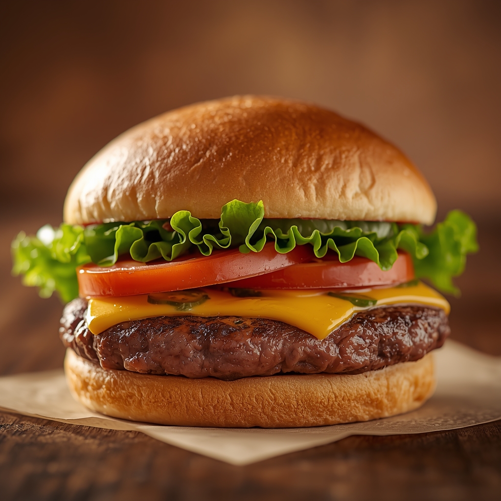 A timeless American classic — juicy beef patty, melted cheese, crisp lettuce, and fresh tomato on a toasted bun. Simple, delicious, and always satisfying.