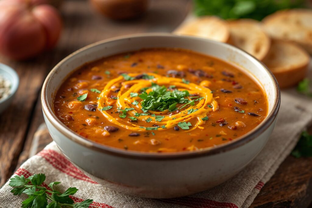 Sweet Potato and Black Bean Soup with Cilantro is a vibrant, hearty, and deeply nourishing dish that brings together earthy sweet potatoes, protein-rich black beans, and the bright freshness of cilantro.